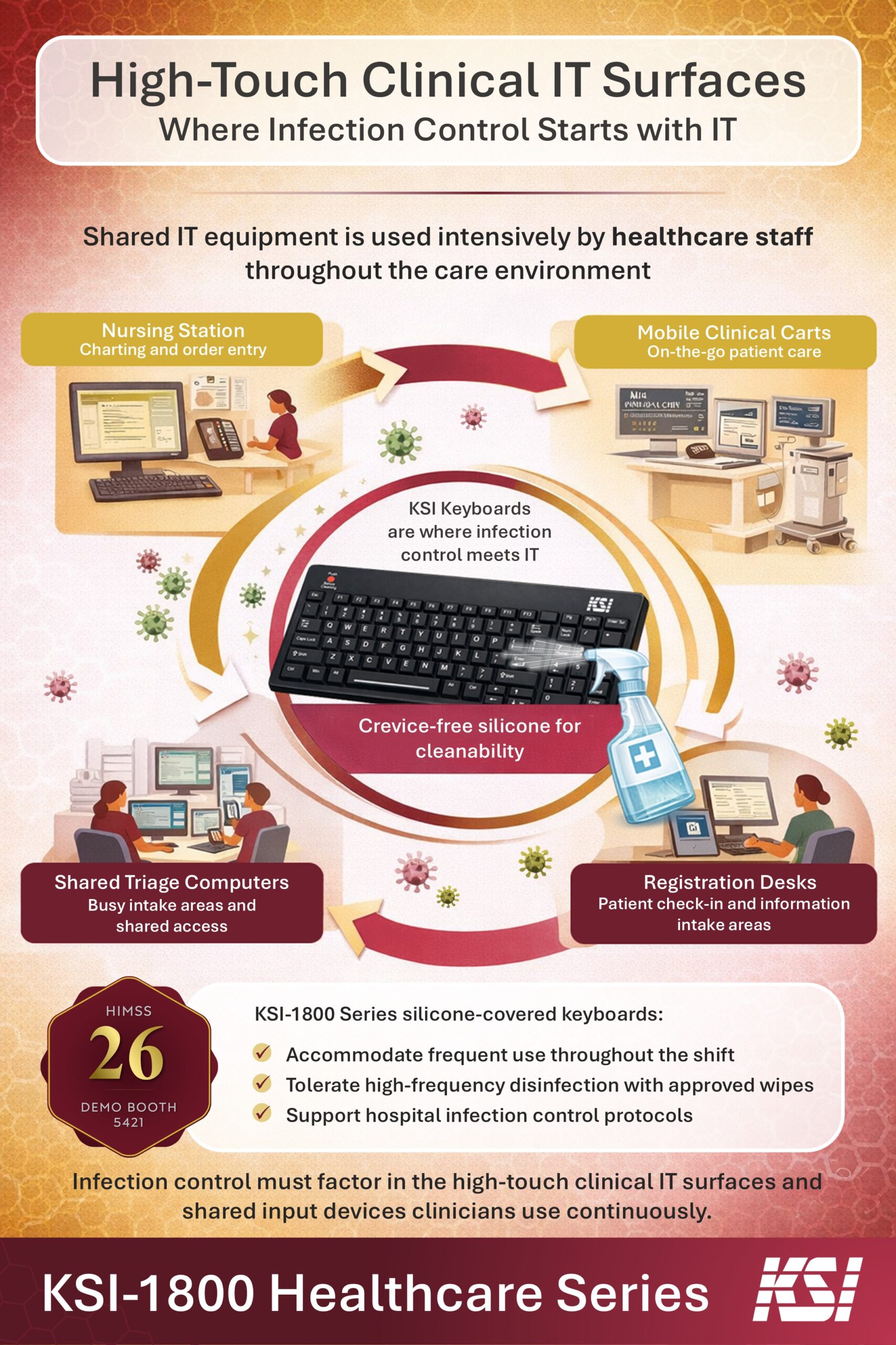 As healthcare organizations evaluate workstation security, identity workflows, and shared device management ahead of HIMSS, infection control considerations are increasingly part of the conversation. Secure access, clinician mobility, and device hygiene are interconnected elements of safe, efficient care environments. Infection control does not begin and end with hands or surfaces alone. It extends to the shared tools clinicians use throughout their day — including the keyboard.
